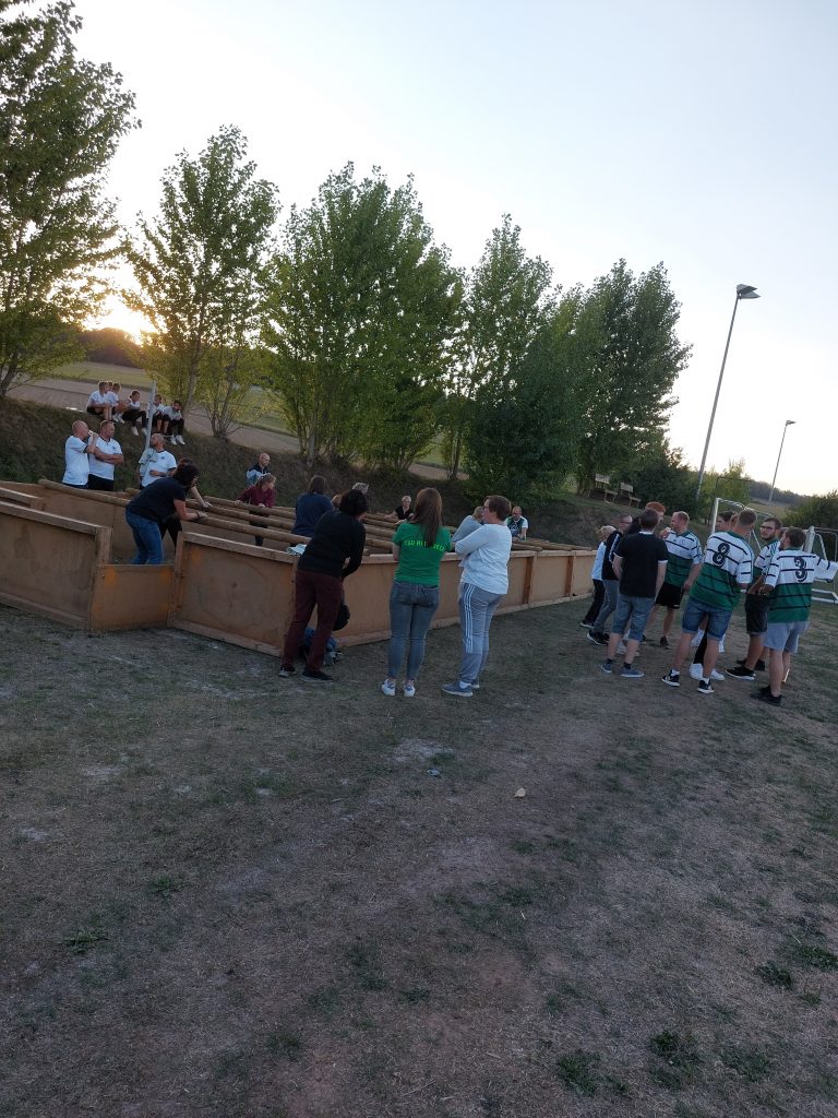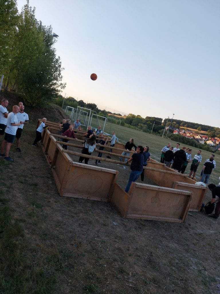 Das Wetter spielte mit und schon am Donnerstag wurde der Menschenkicker aufgebaut, an dem am Freitag Abend 6 Mannschaften um den Sieg spielten. Es setzten sich wider Erwarten die Fussballer durch 😉